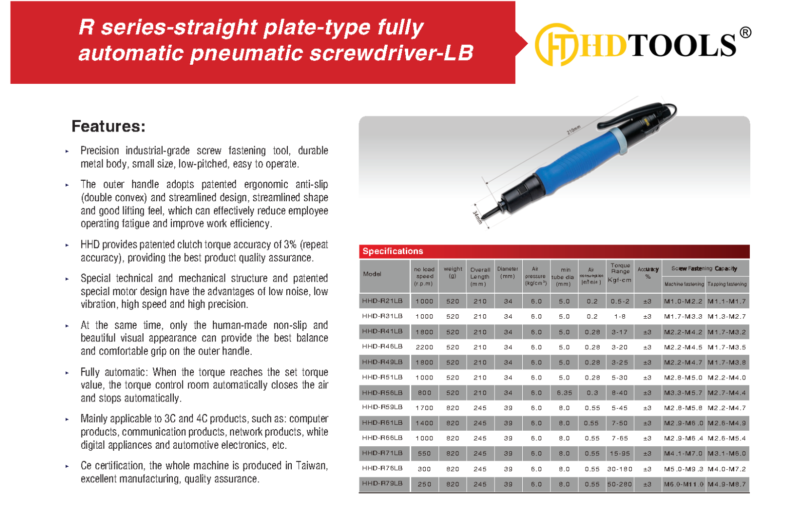 Máy vặn vít khí nén HHD-R21LB/ HHD-R31LB/ HHD-R41LB/ HHD-R46LB/ HHD-R49LB/ HHD-R51LB/ HHD-R56LB/ HHD-R59LB/ HHD-R61LB/ HHD-R66LB/ HHD-R71LB/ HHD-R76LB/ HHD-R79LB